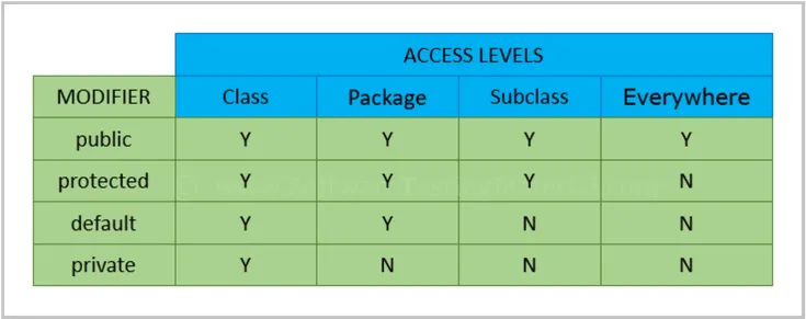 자바에는 public, protected, default, private 이렇게 4개의 접근 제어자가 있다.