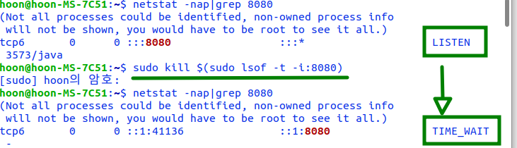 hoon@hoon-MS-7C51:~$ netstat -nap|grep 8080