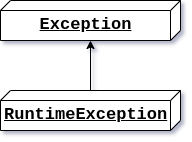 RuntimeException은Exception을 상속받는 예외 클래스다. 프로그램 실행 중에 발생하는 에러를 런타임 예외라고 부르며 반드시 처리할 필요는 없다. 따라서 언체크 예외라고 부른다. 런타임 예외로는 흔히 볼 수 있는NullPointerException이 있다. 컴파일하는 데에는 아무 문제 없지만 런타임 중에 널포인터 예외가 발생하면 프로그램이 예상한 대로 작동하지 않을 수 있다.