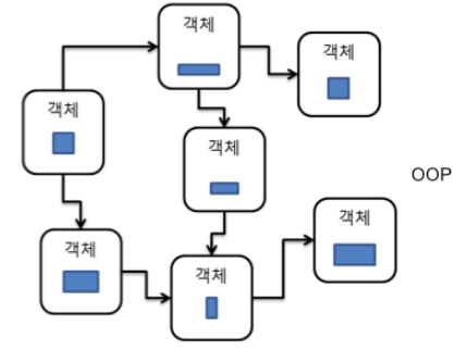 절차지향은 프로시저가 같은 데이터에 의존하고, 프로시저가 프로시저를 의존하는 형태다.
