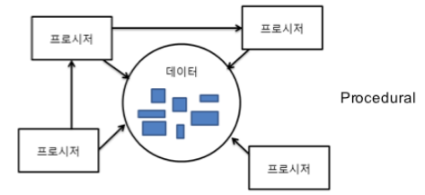 절차지향은 프로시저가 같은 데이터에 의존하고, 프로시저가 프로시저를 의존하는 형태다.