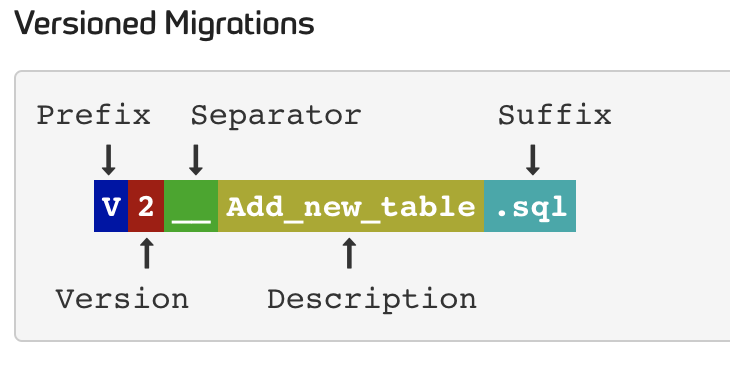 히스토리를 관리하는 테이블이 생성되면, Flyway는 마이그레이션을 위해 classpath에서 db/migration이라는 디렉터리를 찾는다. 이 디렉터리 아래에 있는 마이그레이션 파일(.java or .sql)을 읽는다. 마이그레이션 파일은 버전 번호를 기준으로 순서대로 읽는다. 맨 처음 이미지를 보면 Migration1과 Migration2가 있는데, 이 파일을 순서대로 읽어서 데이터베이스에 적용한다.