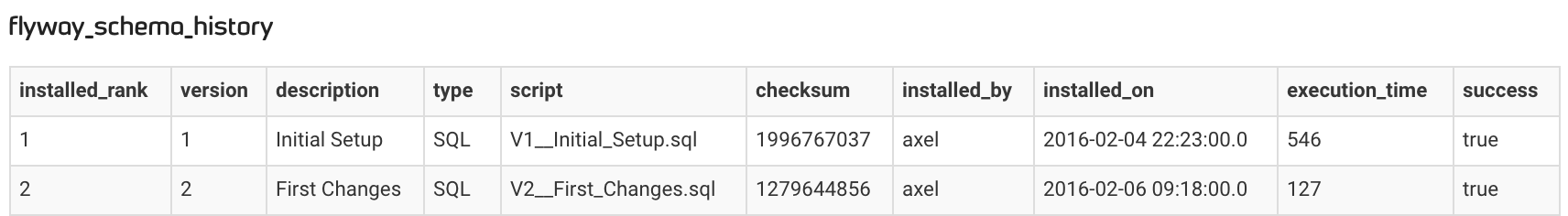 여기서 schema history table이란 말 그대로 flyway가 스키마의 버전을 관리하는 테이블을 말한다.