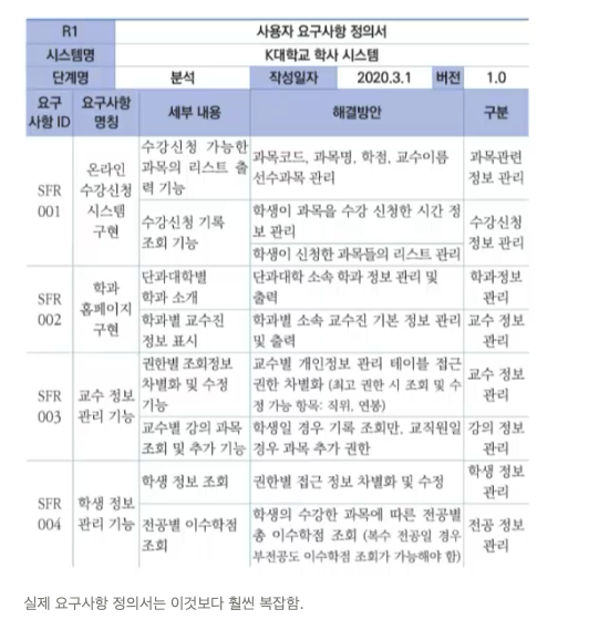 - 요구사항 분석이 끝나면 요구사항 정의서가 나온다.