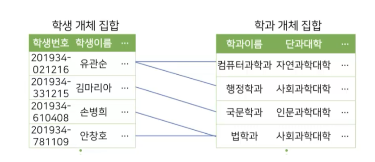 - 개체 집합 간 연결 관계